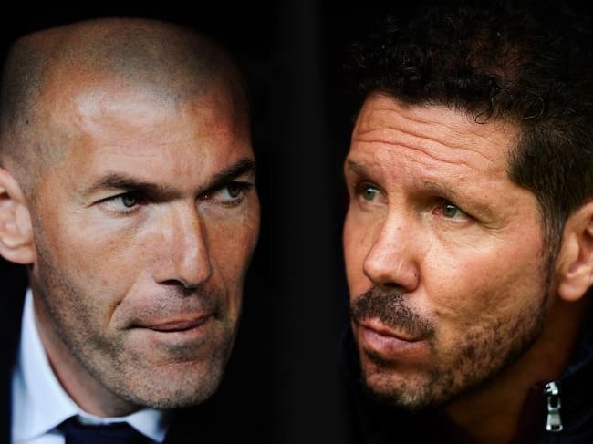 Primer plano de Zidane, entrenador del Real Madrid, y Simeone, técnico del Atlético / GETTY IMAGES
