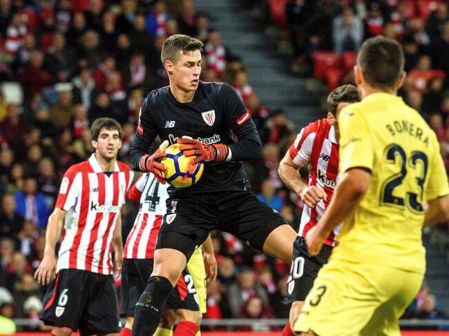 Kepa agarra el balón durante el Athletic-Villarreal / Javier Zorrilla (EFE)