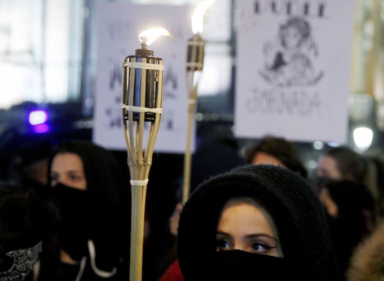 Una mujer porta una vela durante la manifestación que ha recorrido el centro de Madrid contra la violencia de género.