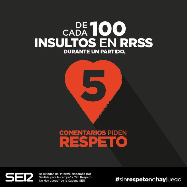 Por cada 100 insultos que se emiten en las redes sociales durante un solo partidos, 5 comentarios piden respeto.