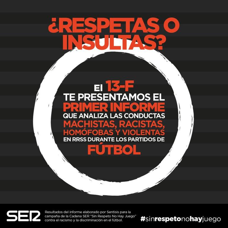 La Cadena SER presentará el primer informe que analiza las conductas violentas, machistas, racistas y homófobas en las RRSS durante los partidos de fútbol.