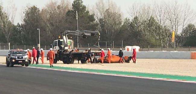 El piloto español Fernando Alonso (McLaren) ha sufrido una salida de pista cuando se llevaban 45 minutos de la primera jornada de ensayos de la Fórmula 1 en el Circuito de Barcelona. El piloto español se ha salido de la pista justo en la curva antes de encarar la recta de tribuna y se ha podido apreciar que una de sus ruedas había saltado del monoplaza.