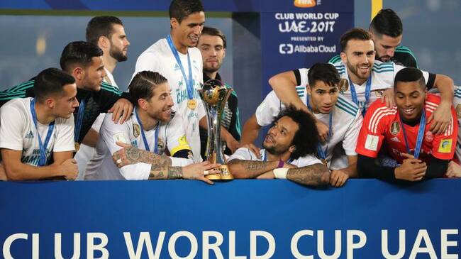 Los jugadores del Real Madrid celebran su última victoria en el Mundial de Clubes. / AFP/Getty Images (KARIM SAHIB)
