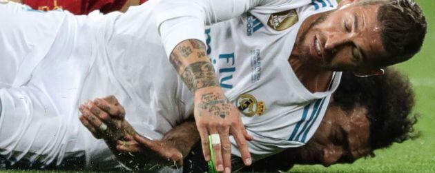 Ramos y Salah, en la acción en la que se lesiona el egipcio / ARMANDO BABANI