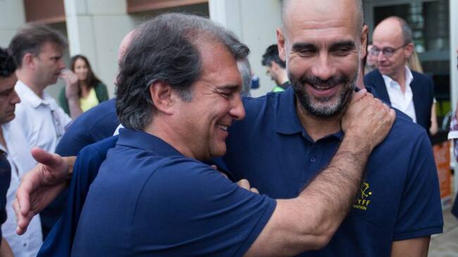 Joan Laporta y Pep Guardiola, en un acto de la Fundación Johan Cruyff. / Enric Fontcuberta (EFE)
