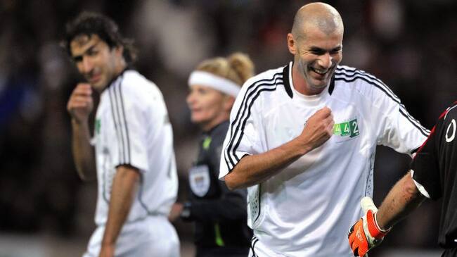 Raúl y Zidane, en un partido benéfico jugado en 2008. / FABRICE COFFRINI (AFP/Getty Images)