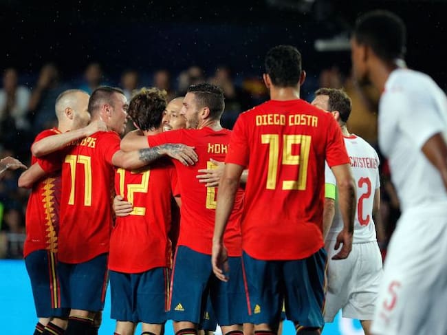La selección española, en su partido contra Suiza. / Juan Carlos Cardenas (EFE)