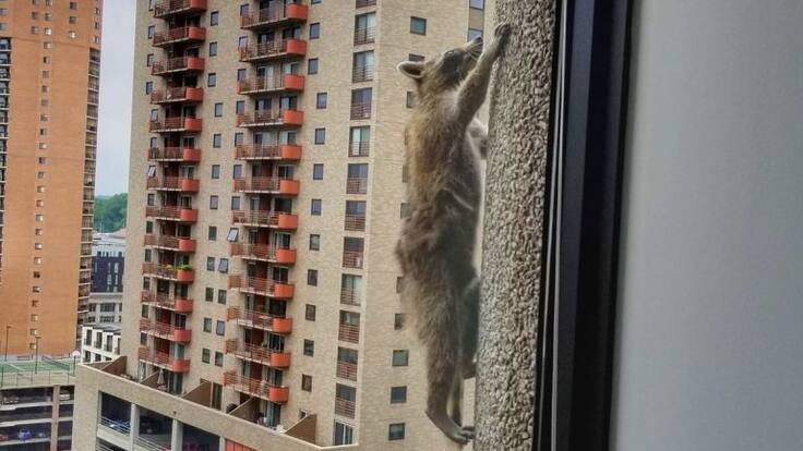 Un mapache conquista Internet tras escalar un rascacielos de 25 plantas