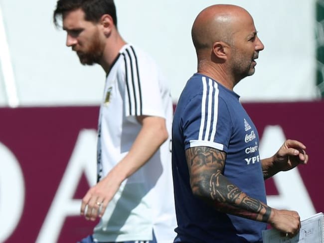 Messi y Sampaoli, durante un entrenamiento de la selección argentina. / ALBERT GEA (Reuters)