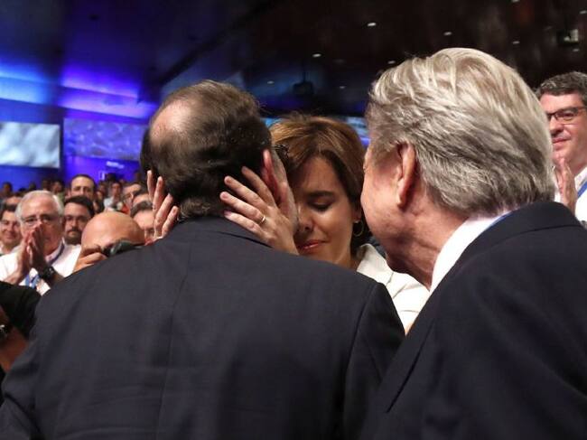 El presidente del PP, Mariano Rajoy (i), junto a la candidata a liderar al PP, Soraya Sáenz de Santamaría, durante la celebración del Congreso Nacional del Partido Popular / Kiko Huesca (EFE)