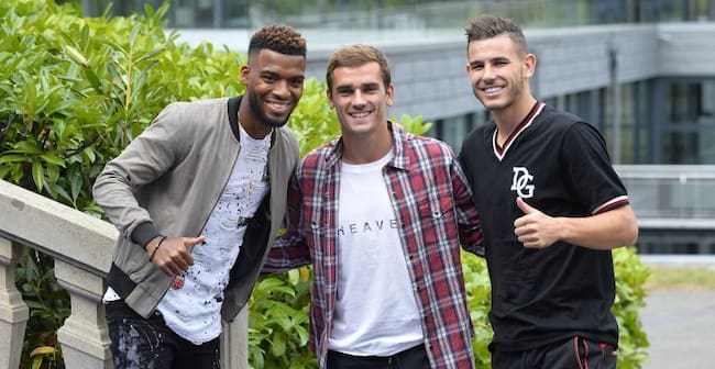 Lucas, Griezmann y Lemar, a su llegada a la concentración francesa / Aurelien Meunier (Getty Images)