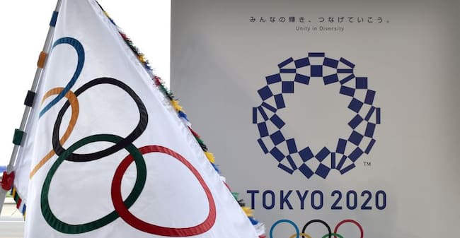 Imagen promocional y bandera de los Juegos Olímpicos de Tokio 2020 / Getty Images