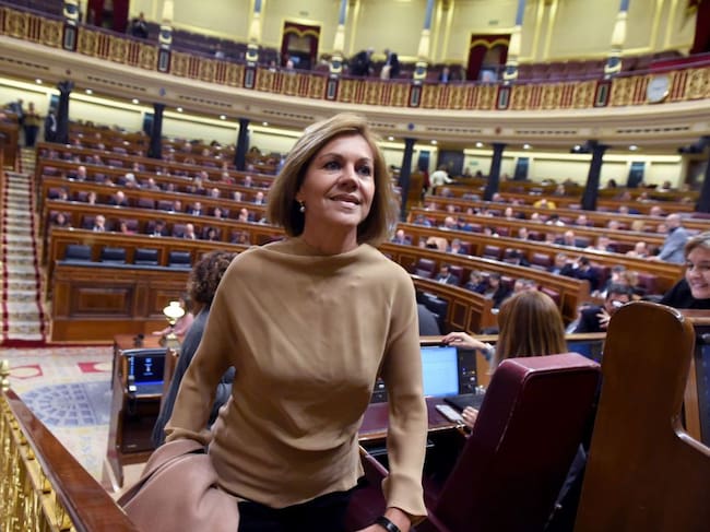 La ex secretaria general del PP María Dolores de Cospedal a su llegada al hemiciclo. / FERNANDO VILLAR (EFE)