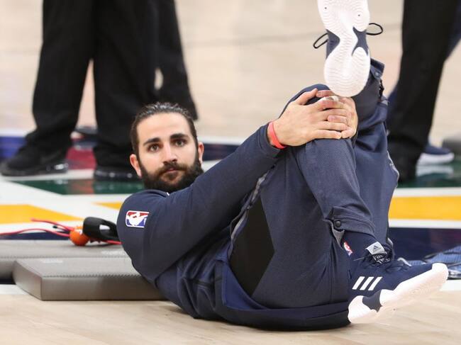El jugador español de los Utah Jazz, Ricky Rubio, en el calentamiento previo a un partido ante los Memphis Grizzlies. / George Frey (EFE)