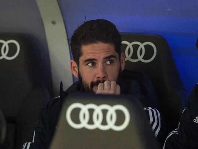 El centrocampista del Real Madrid, Francisco Román Alarcón "Isco", en el banquillo del equipo blanco durante el encuentro correspondiente a la jornada 14 de primera división que disputan frente al Valencia en el estadio Santiago Bernabéu, en Madrid. / Rodrigo Jimenez (EFE)