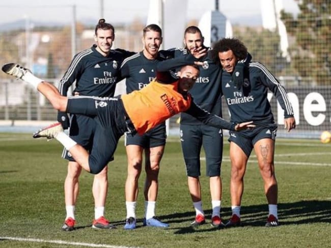 Tras el entrenamiento previo al encuentro contra el Huesca, próximo encuentro liguero de los blancos fuera de casa, Benzema presumió de ser parte de "un equipo top" junto a Ramos, Bale, Marcelo y Lucas Vázquez.