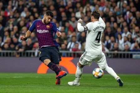 Un Barcelona poco incisivo consiguió el pase a la final de la Copa del Rey al golear al Real Madrid en el Santiago Bernabéu. Dos goles de Suárez y uno en propia de Varane sentenció la eliminatoria a favor de los culés (0-3).