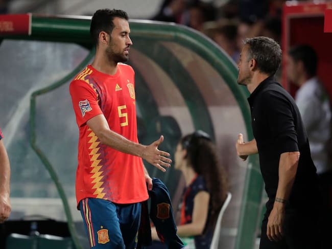 Luis Enrique da la mano a Busquets durante un partido de la Selección. / Laurens Lindhout (Getty Images)