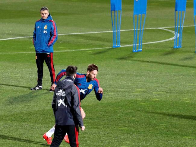 El seleccionador nacional Luis Enrique durante el entrenamiento llevado a cabo esta tarde en la Ciudad Deportiva. / ZIPI (EFE)