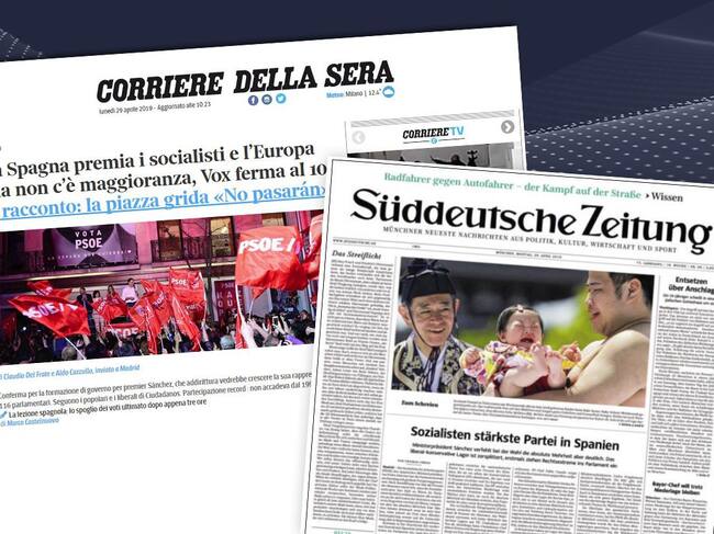 "El Partido Socialista, más fuerte en España", "Ahora depende de los separatistas", "La extrema derecha ha vivido su mayor triunfo y una amarga victoria al mismo tiempo"... así se analiza el 28-A en los periódicos europeos y norteamericanos