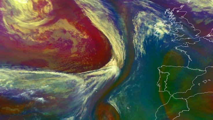 Las imágenes de satélite captadas este martes ya dejaban ver cómo se aproximaba a la Península la 'lengua' de aire polar marítimo que va a provocar un cambio radical del tiempo desde este jueves. El 14 de mayo, martes, estaba situada en el Atlántico, por eso este miércoles ha sido el día de más calor de estas jornadas de verano adelantado en pleno mes de mayo.