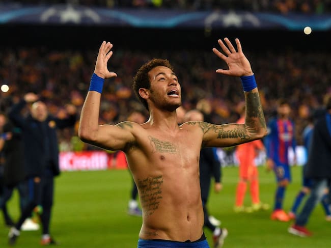 Neymar celebrando la victoria del 6-1 ante el PSG con el Barcelona / LLUIS GENE (AFP)
