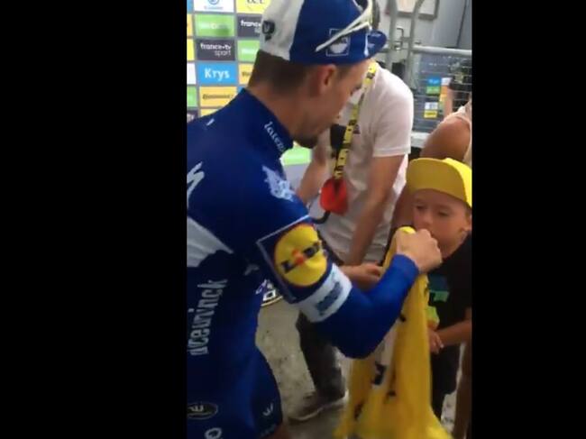Tal y como cuentan los enviados especiales de la Cadena Ser, el galo es portada de L'Equipe y tiene a todo el país en la palma de su mano, por su carisma. Una prueba más de ello, es este gesto que tuvo Alaphilippe con un niño en la zona mixta. A los corredores se les permiten las visitas de familiares y amigos, y ante uno de ellos, el líder del Tour se quita el maillot amarillo, y se lo cede viendo que el pequeño tiene frío.
