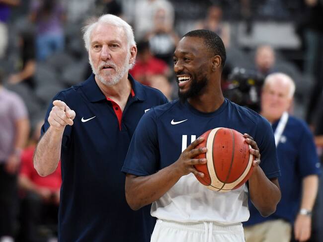 El seleccionador de Estados Unidos Gregg Popovich, junto a Kemba Walker. / Getty Images