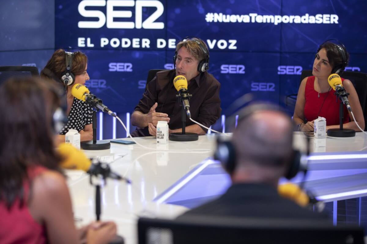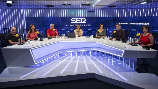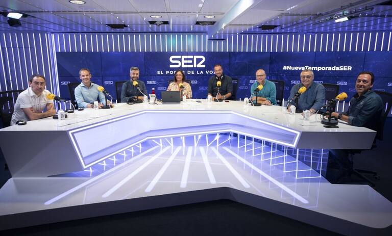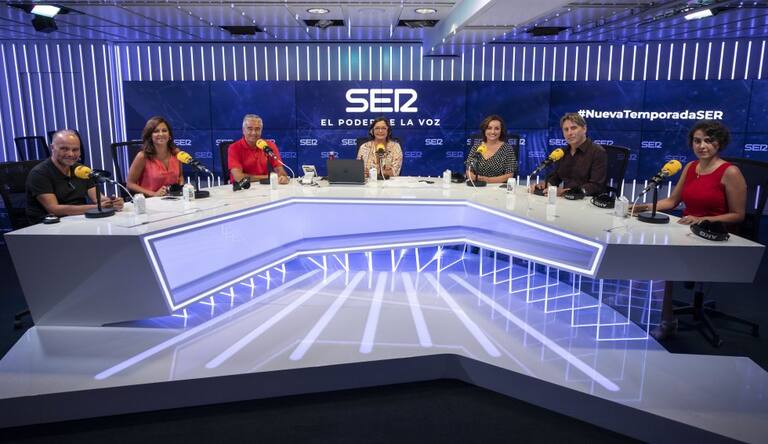 • Varias de la voces de la SER, con Daniel Gavela, durante la presentación de la nueva temporada.