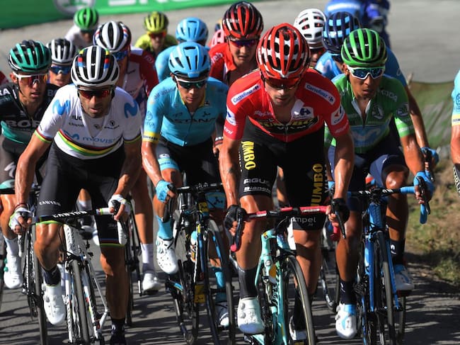 El esloveno Primoz Roglic defendió el maillot rojo ante la presión de los Movistar, Nairo Quintana y Alejandro Valverde, que iniciaron la etapa segundo y tercero respectivamente. El colombiano cedió en las rampas del puerto de Cotos y perdió la segunda posición, que fue a parar al campeón del mundo.