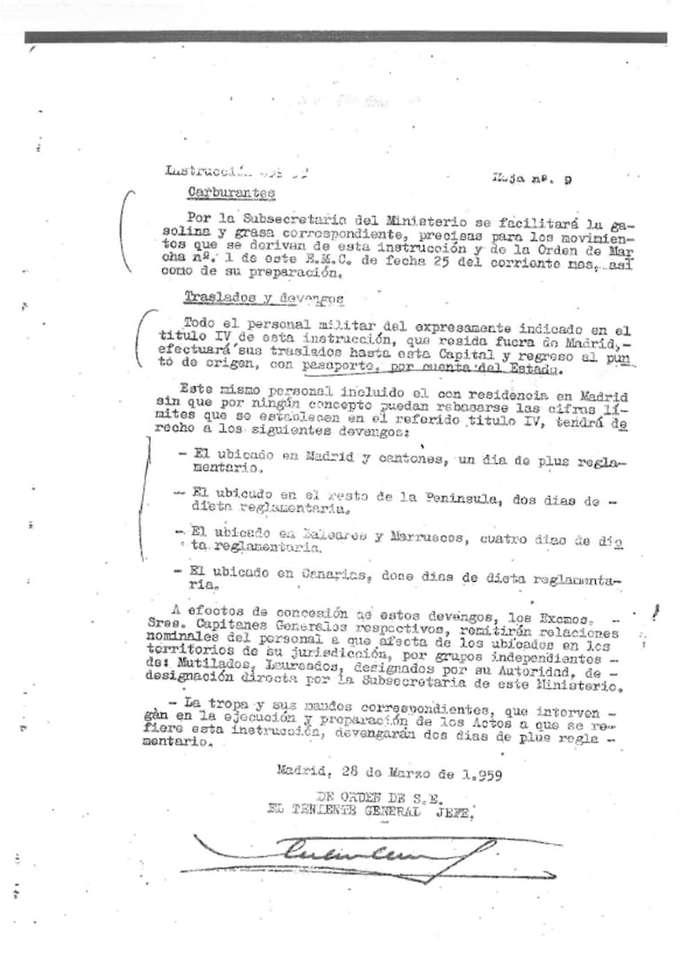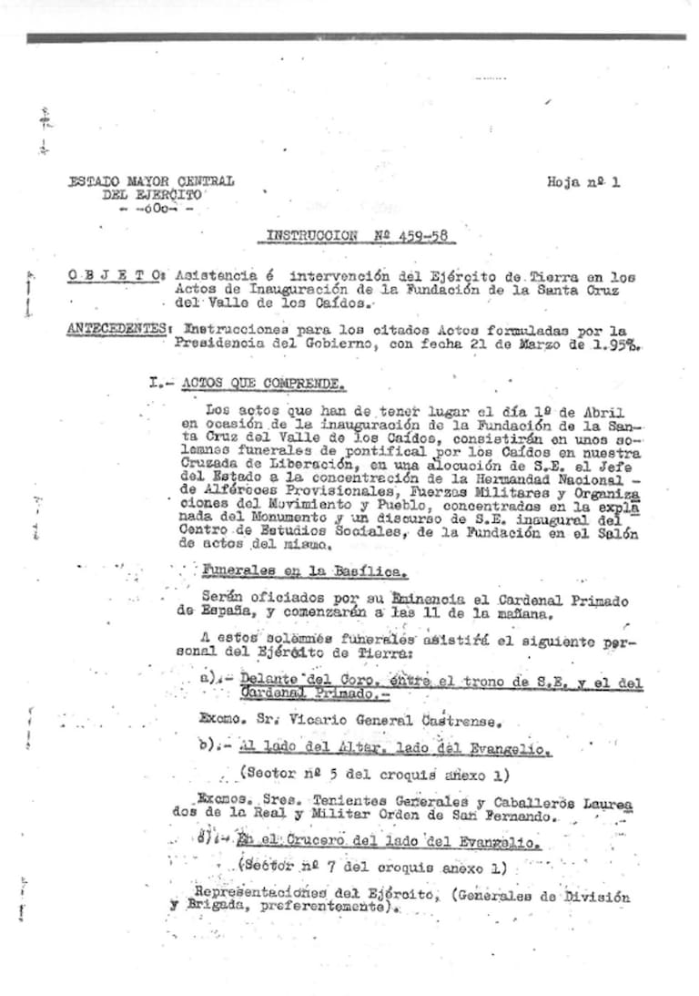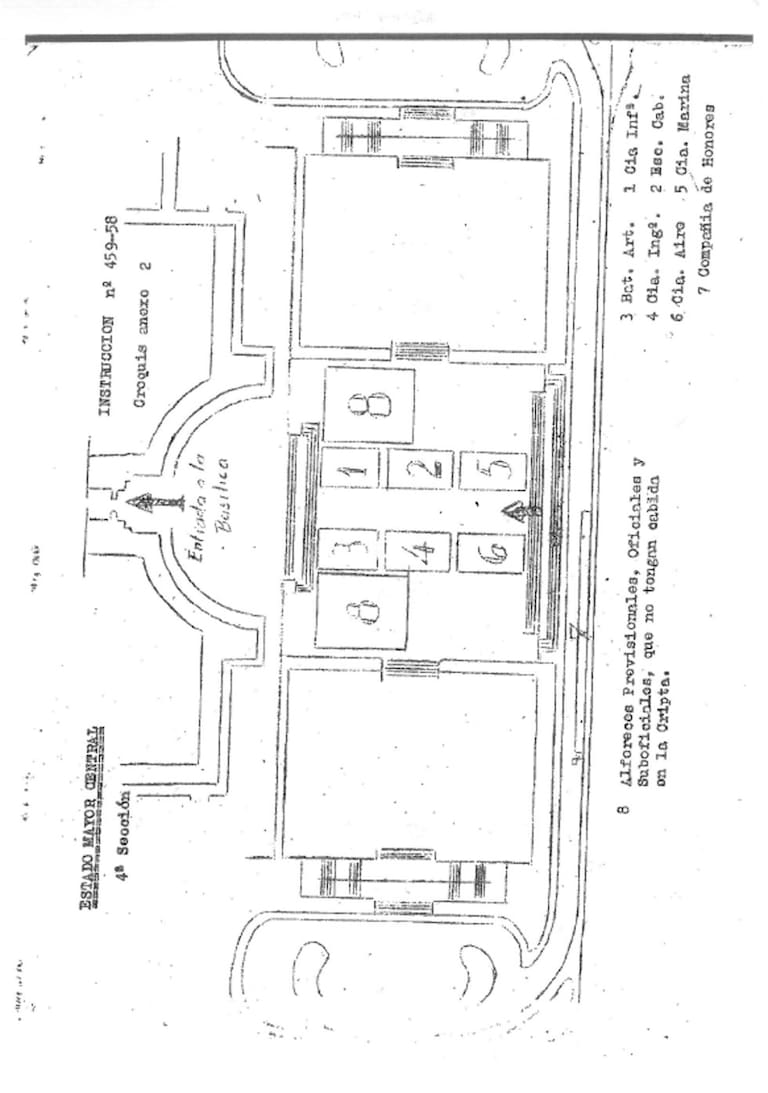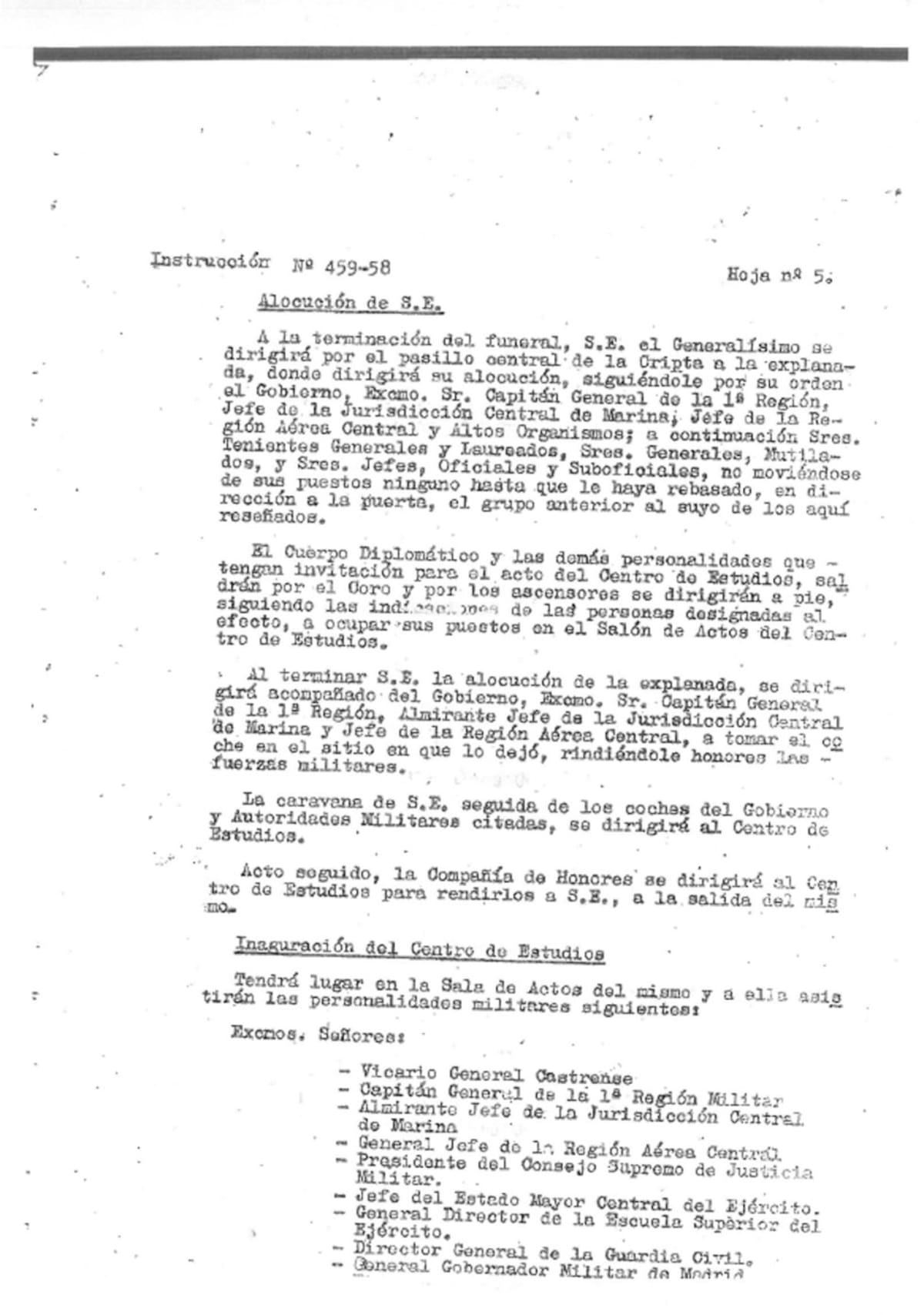 La instrucción número 459-8, firmada por el teniente General Jefe del Estado Mayor Central del Ejército, el 28 de marzo de 1959, describe el protocolo de los funerales que se oficiarían en la basílica.