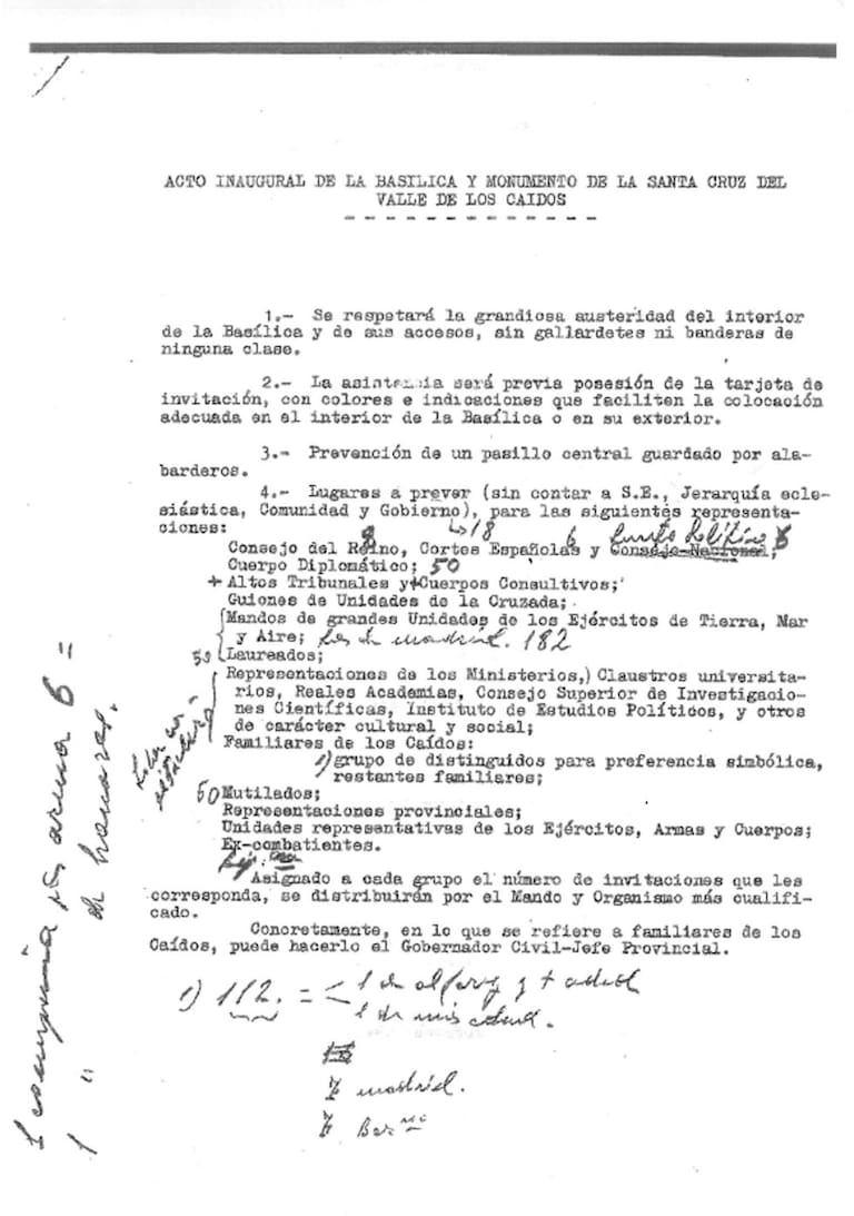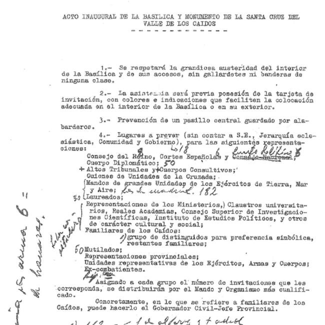 Instrucciones básicas para la inauguración de la basílica con la lista de representantes que acudirán a la misma provistos de tarjetas de invitaciones de diferentes colores. La ceremonia deberá “respetar la grandiosa austeridad del interior”.
