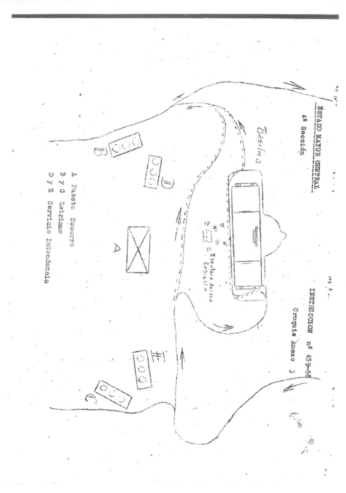 Plano de la explanada del Valle de los Caídos, donde tuvieron que situarse los alféreces provisionales, los oficiales y suboficiales que no tuvieron cabida dentro de la Cripta del Valle de los Caídos.