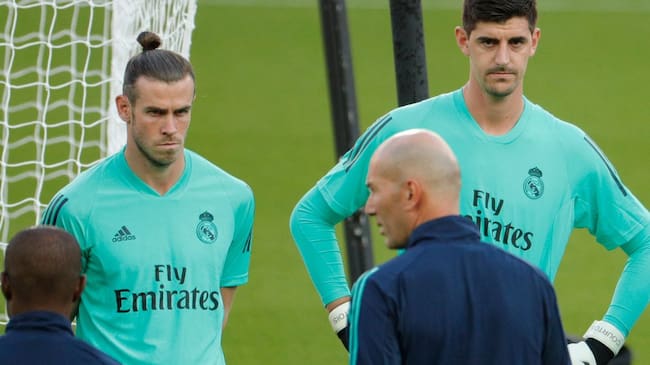 Bale, Courtois y Zidane, en un entrenamiento del Real Madrid. / Getty Images