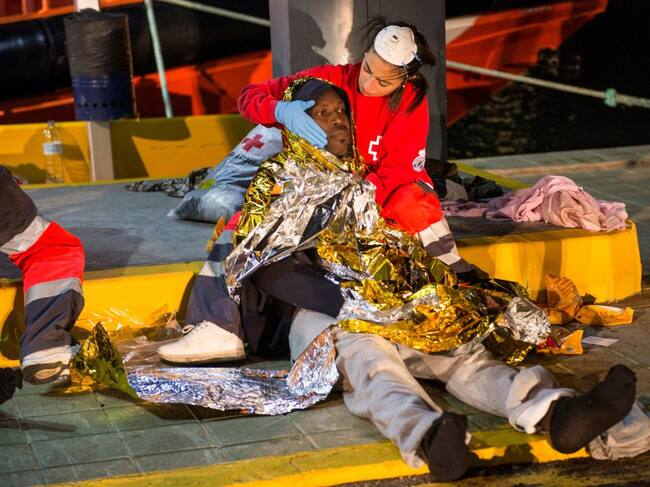 Un miembro de la Cruz Roja atiende a uno de los supervivientes de la patera. / JESUS BLASCO DE AVELLANEDA (Reuters)