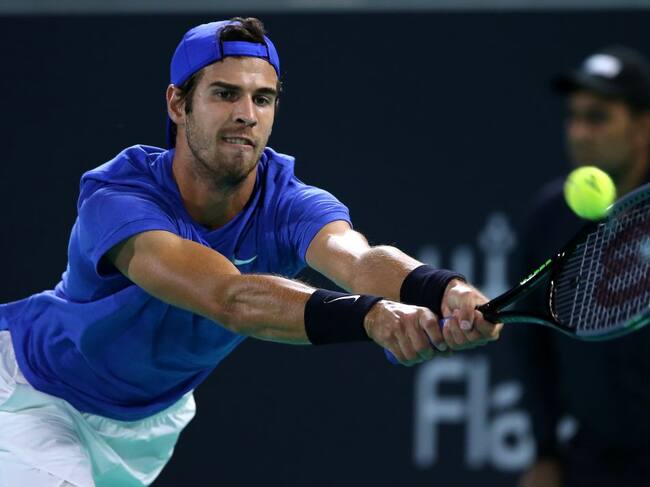 Kachanov golpea una pelota en el partido contra Nadal / AFP via Getty Images