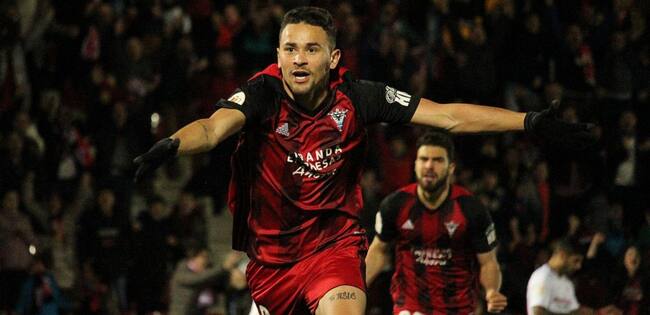 Matheus celebra un gol ante el Sevilla / CD Mirandés