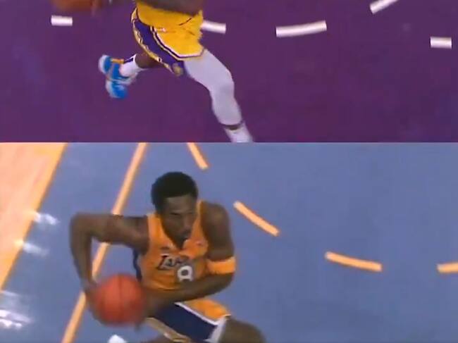 Kobe Bryant y Lebron James haciendo la misma jugada(Twitter Lakers)