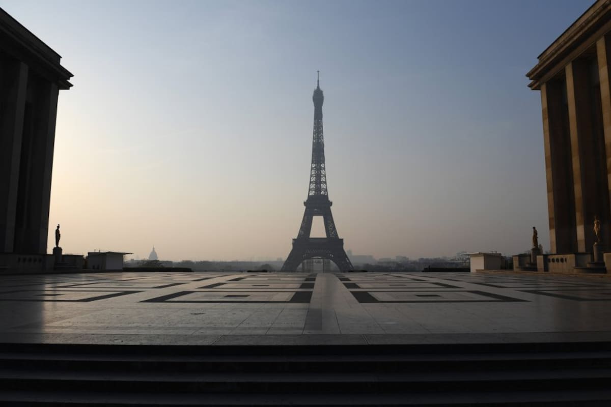 La plaza Trocadero con la torre Eiffel al fondo, en París.