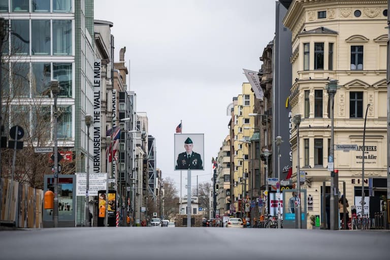 La plaza frente al Checkpoint Charlie, en Berlín.