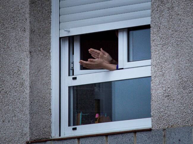 Varios vecinos de Ourense aplauden este lunes la labor de los trabajadores sanitarios durante la crisis del coronavirus. / Brais Lorenzo (EFE)