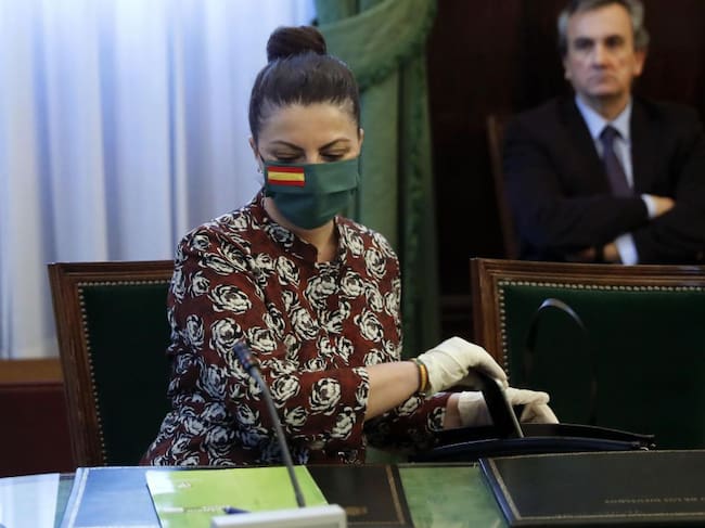 La secreteria general de Vox, Maacrena Olona, este martes durante la reunión de la Junta de Portavoces. / Chema Moya (EFE)