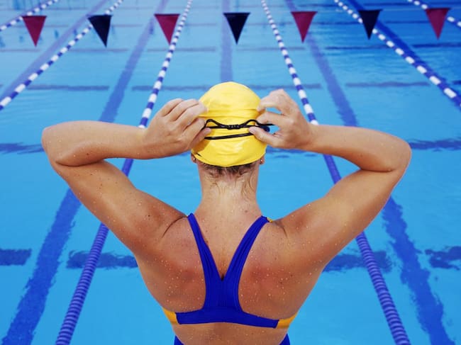 Imagen de una nadadora al borde de una piscina de competición(Getty Images)