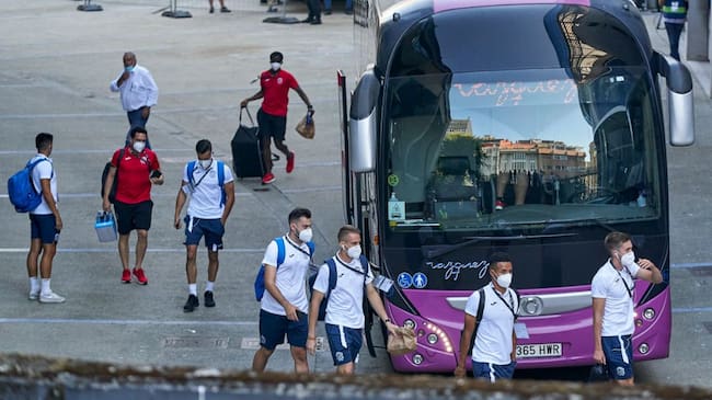Los jugadores del Fuenlabrada, en su viaje a A Coruña. / Getty Images