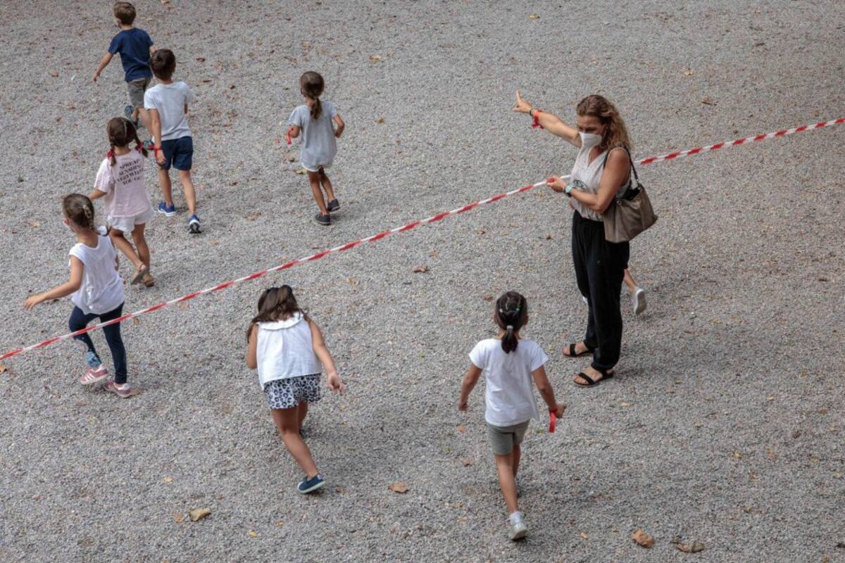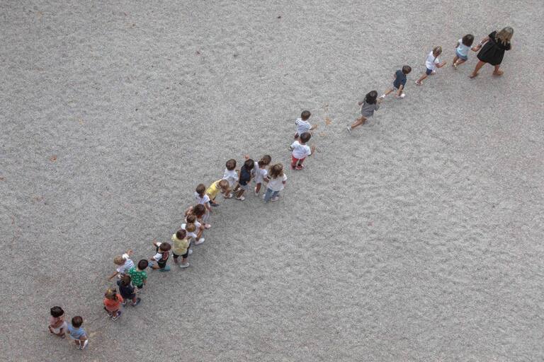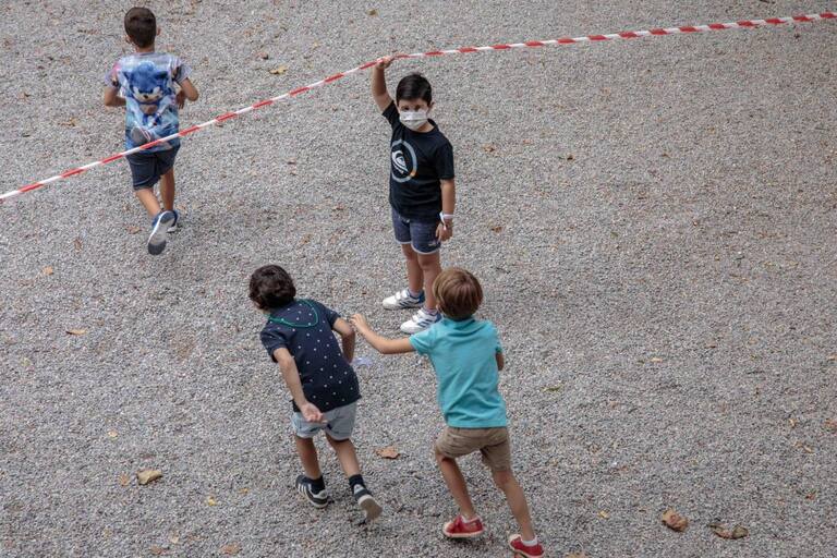 Varios niños del colegio Jesús y María de Valencia, se dirigen a la zona acotada para el recreo.