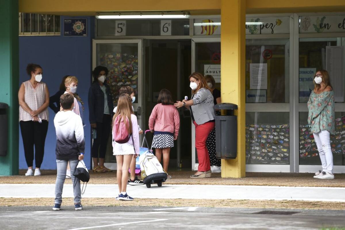 Varios alumnos acuden al CEIP. R.Macías Picavea en el primer día del curso escolar 2020-2021, en Santoña (Cantabria), a 7 de septiembre de 2020.
