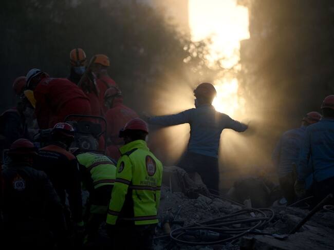 Equipos de búsqueda y rescate buscan víctimas en el sitio de un edificio derrumbado / Getty Images