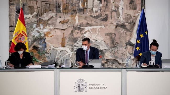 El presidente del Gobierno, Pedro Sánchez preside la reunión del Consejo de Ministros, en presencia de la vicepresidenta primera del Gobierno, Carmen Calvo, y el vicepresidente segundo, Pablo Iglesias / Borja Puig de la Bellacasa (EFE)