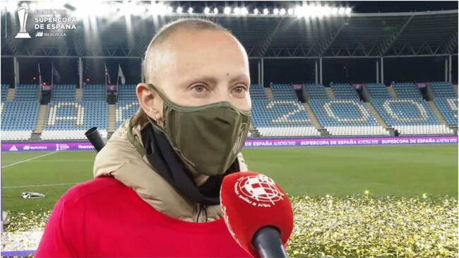 La protagonista de la ceremonia de entrega de trofeos de la Supercopa de España aseguró que "nunca" olvidará lo que sus compañeras del Atlético de Madrid están haciendo por ella desde que se le detectó un tumor en la cabeza el pasado mes de mayo.