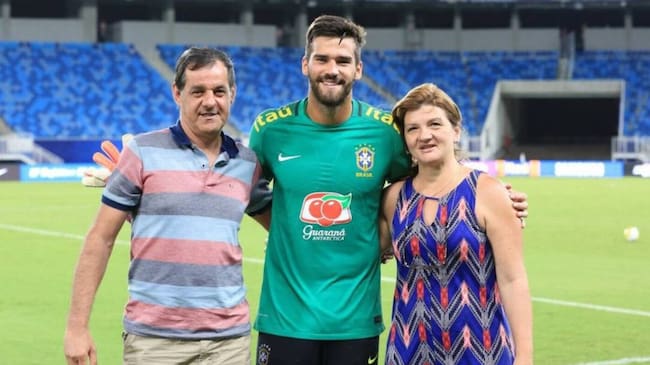 Alisson Becker, portero del Liverpool de Inglaterra, junto a sus padres(Getty Images)